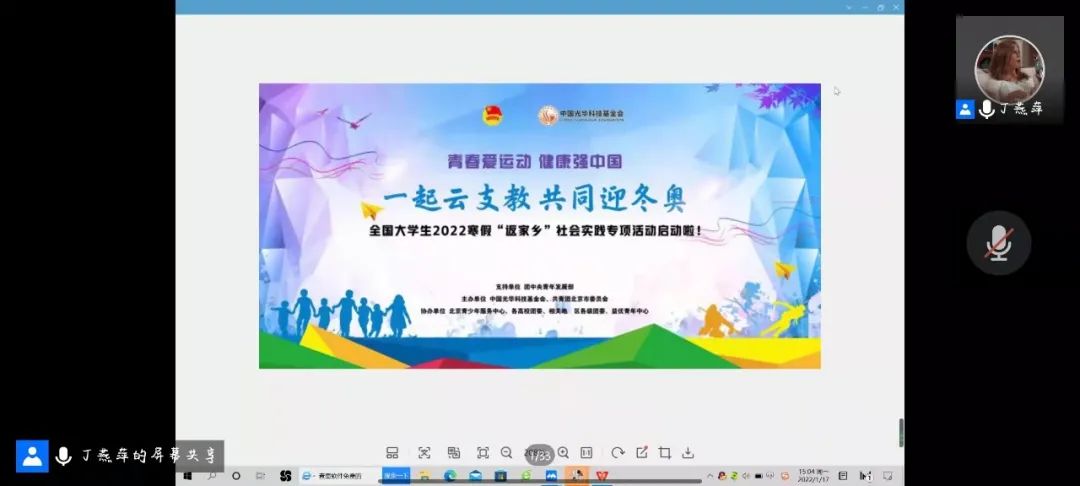 一起云支教,共同迎冬奥。为深入贯彻习近平总书记关于北京冬奥会各项工作的重要指示精神,持续提升青少年体质健康水平,进一步在广大青少年中弘扬奥运精神、推广冰雪运动、宣传冬奥文化,持续引导大学生“返家乡”参与实践活动。1月17日,太阳城举办“一起云支教,共同迎冬奥”线上动员大会。