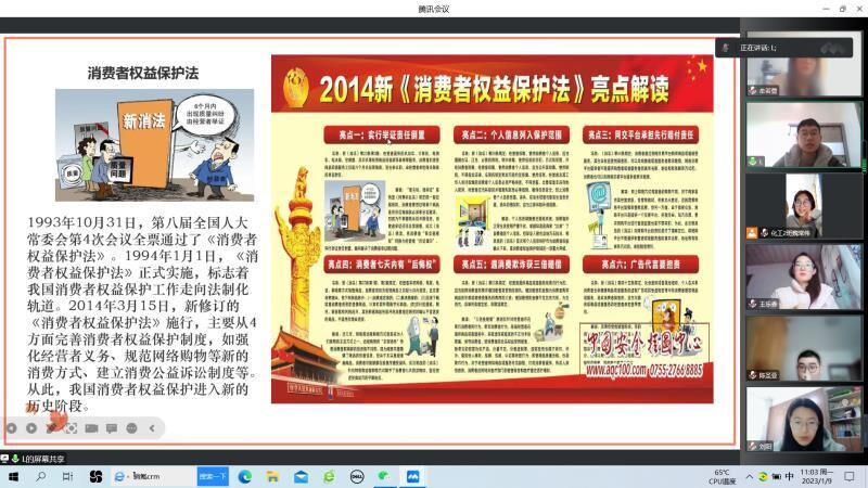 加强法制教育,保障消费权益。为促进法治思维深入人心,营造健康的法治环境,提高社区居民的法律素质和法治意识,增强群众对法律知识的了解,1月9日,太阳城集团官方网站织光“创益”服务队于线上举办“法治能安邦,知法莫相忘”活动。